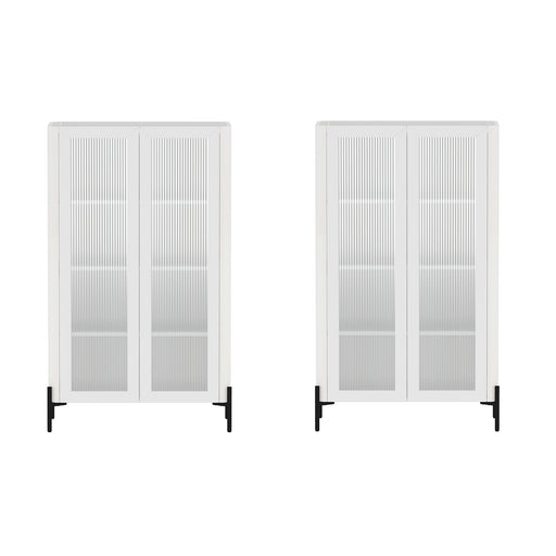 View full detailsAbbey Modern 32" Tempered Glass Bookcase Cabinet in White (4-Shelf) - Set of 2